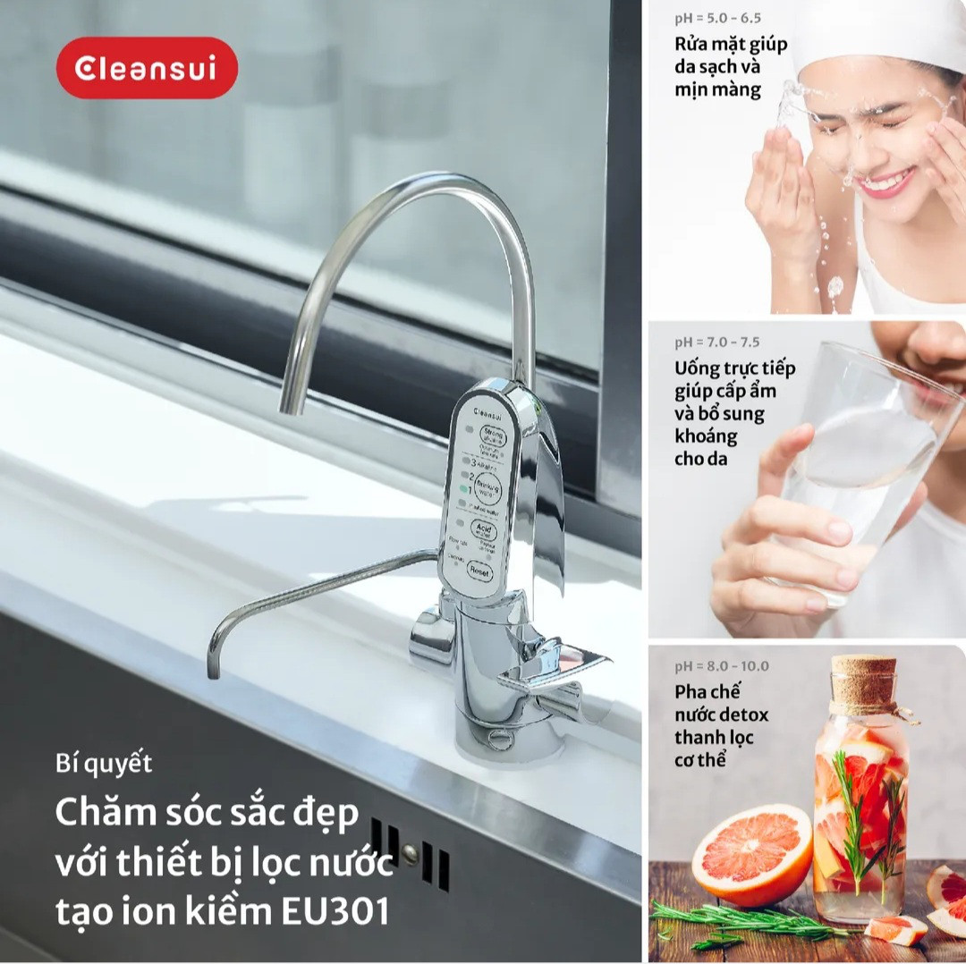 Thiết bị điện giải ion kiềm EU301 được đánh giá là sự kết hợp giữa công nghệ tiên tiến cùng thiết kế với phần thân vòi tinh tế, sáng bóng. Ngoài ra, dòng thiết bị lọc nước tích hợp nước máy nóng lạnh và nước lọc trong một vòi duy nhất EU201 và EU202 cũng mang lại trải nghiệm tiện dụng cho người dùng. Hai sản phẩm cho phép người dùng sử dụng đồng thời ba chế độ nước máy nóng, lạnh và nước lọc, giúp cho việc nội trợ trở nên đơn giản đến không ngờ.